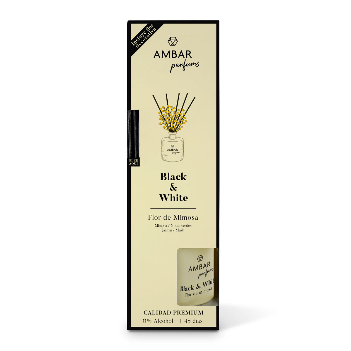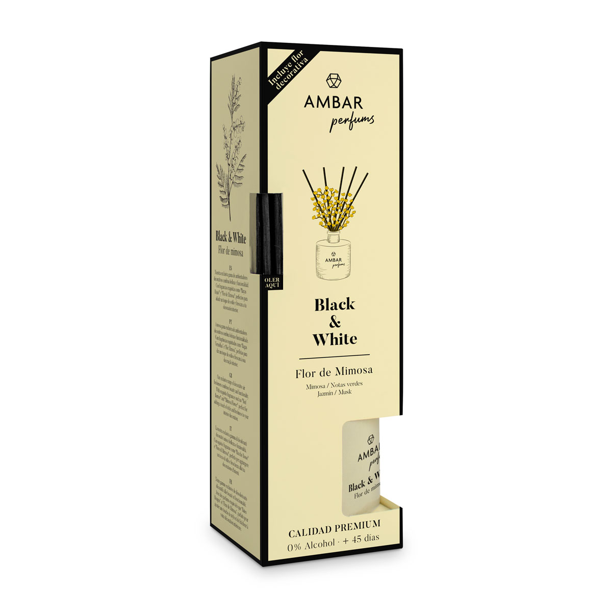 El mikado Flor de Mimosa de la colección Black & White te transporta a un jardín en flor con su fragancia sofisticada y reconfortante. Sus notas de salida de mimosa y notas verdes, un corazón de jazmín, y un fondo suave de musk crean una combinación perfecta para llenar tus espacios de serenidad y estilo. Con un diseño decorativo minimalista y una delicada flor, este mikado no solo perfuma, sino que también decora tu hogar. Disfruta de más de 45 días de frescura gracias a su fórmula de 0% alcohol y transforma tu ambiente con un aroma inolvidable.