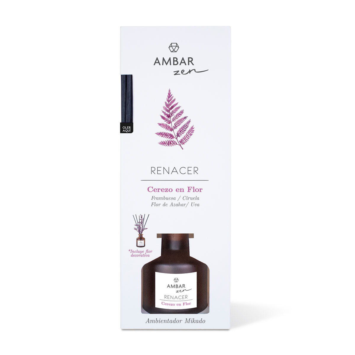 Ambientador Mikado Cerezo en flor Ambar Zen de 40 ml, 0% alcohol y duración de +45 días. *Incluye flor decorativa.