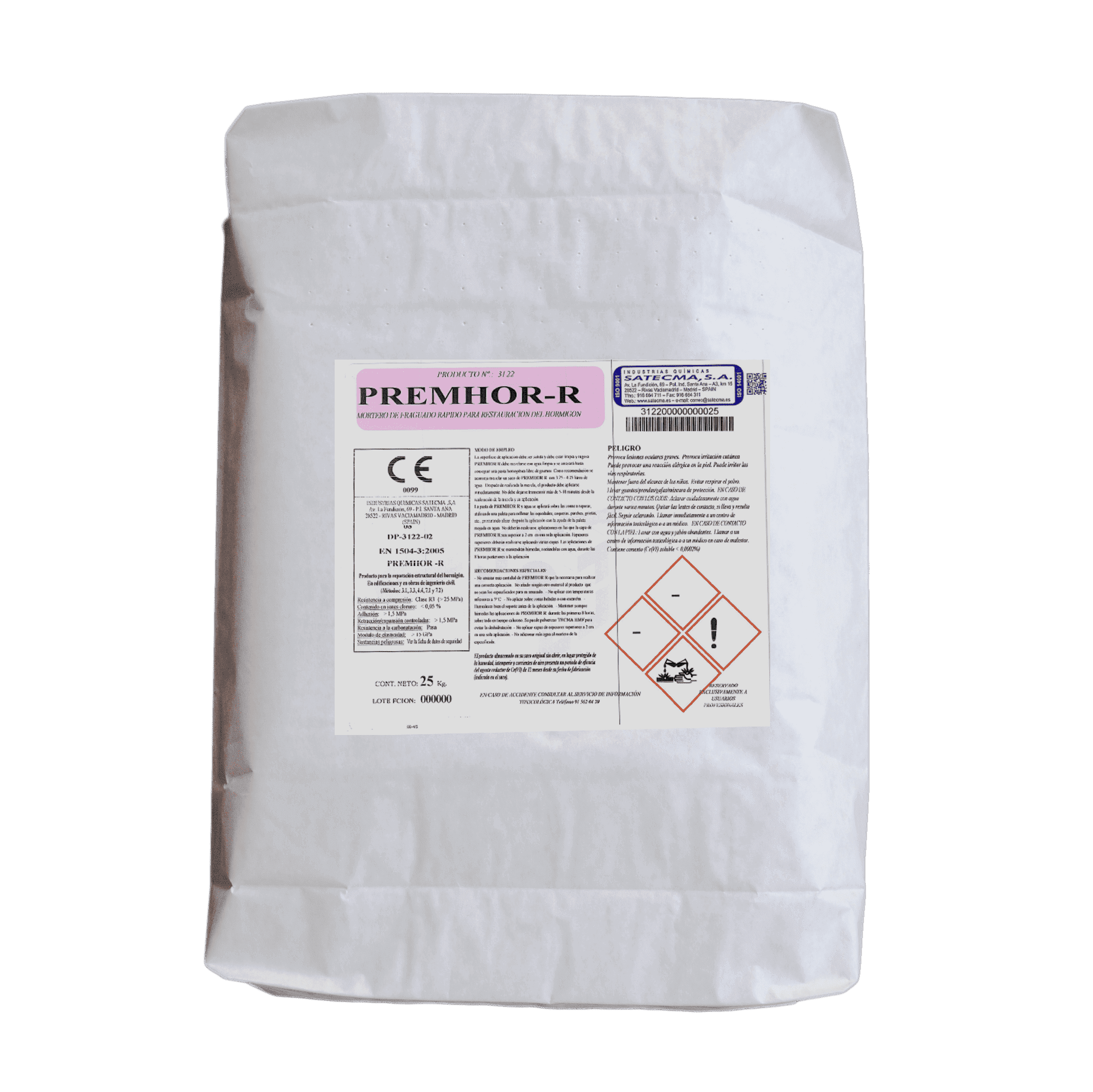 Mortero sin retracción, tixotrópico, de fraguado muy rápido, diseñado para la rehabilitación, reparación y restauración del hormigón, así como para fijaciones rápidas. Por su especial formulación, las reparaciones efectuadas con PREMHOR R resultan impermeables al paso del agua. Por ello se emplea también en la formación de escocías en uniones de paramentos.